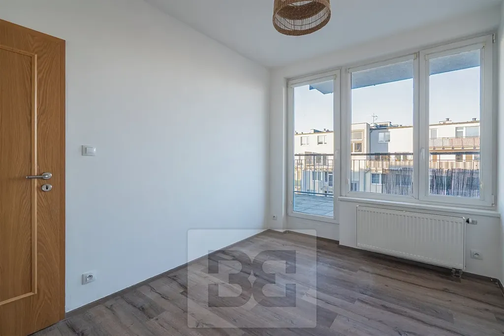 Nabízíme k pronájmu prostorný a světlý byt 3+kk o celkové ploše 70 m² s mimořádně velkou terasou o výměře 60 m², který se nachází v 6. patře moderní, dobře udržované a zateplené budovy z roku 2006 od renomovaného developera FINEP, v ulici Zakšínská.