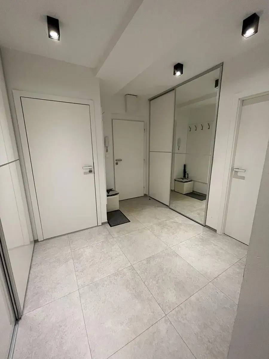 Byt je opravdu velký, 81 m2, velká světlá chodba se zabudovanými skříněmi a posuvnými dveřmi se zrcadlem, technická místnost s pračkou a sušákem na sušení prádla, koupelna s velkým sprchovým proskleným koutem a WC. Dále pokračuje dětský pokoj dostatečně velký pro 2 děti, ložnice rovněž se zabudovanými úložnými skříněmi, obývací pokoj se skleněnými posuvnými dveřmi a s balkónem. Z obývacího pokoje se vstupuje do kompletně vybavené kuchyně se všemi spotřebiči - zabudovaná pečící trouba, sklokeramická deska, mikrovlnná trouba, myčka, digestoř, lednice, vinotéka. V tomto bytě si užijete příjemný luxus, pohodlí a velký prostor pro rodinu s dětmi.