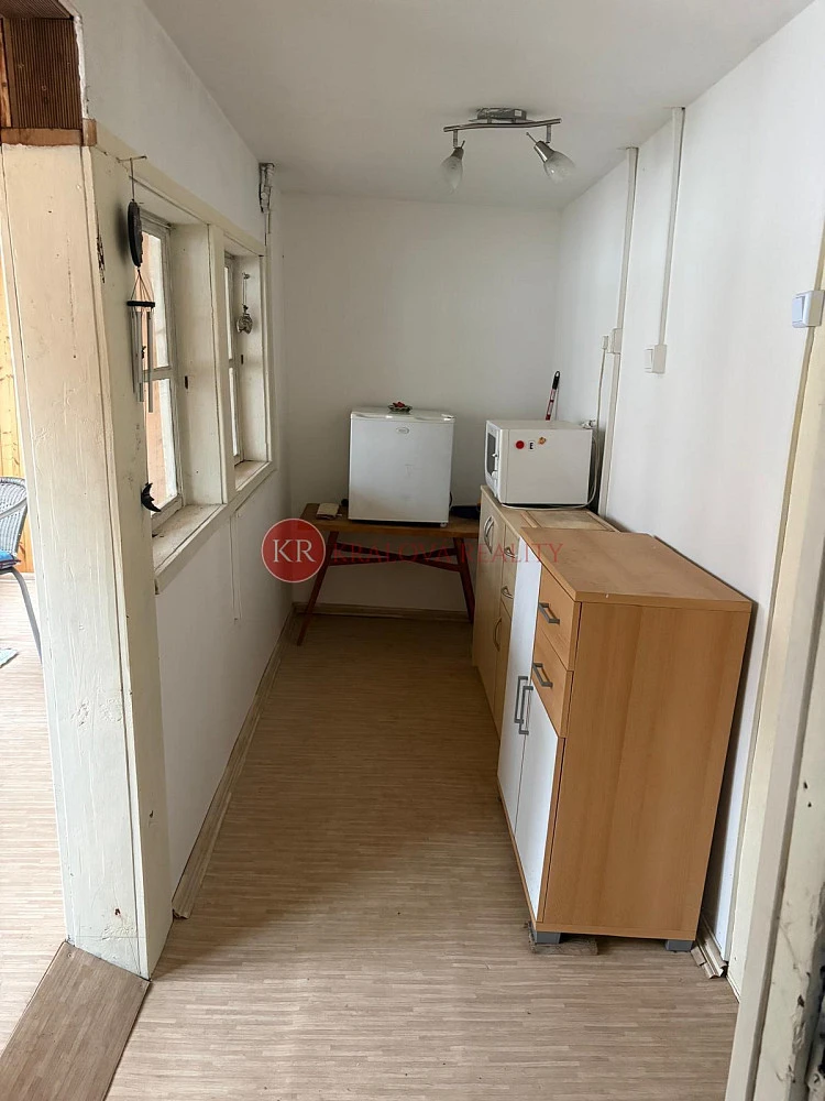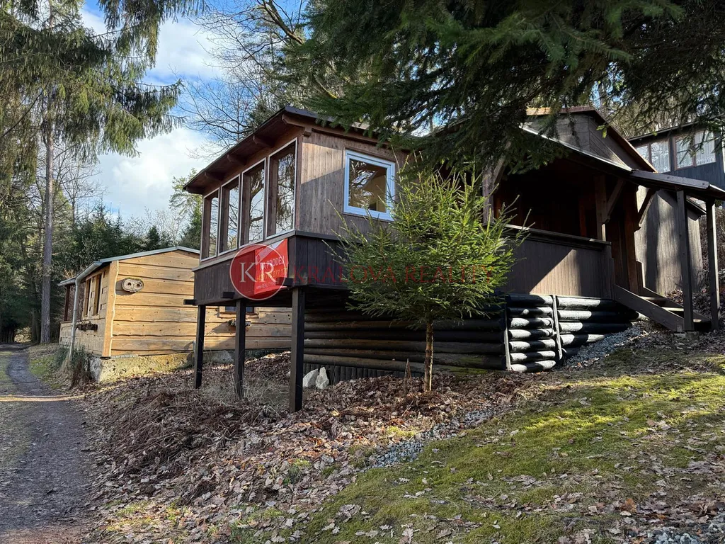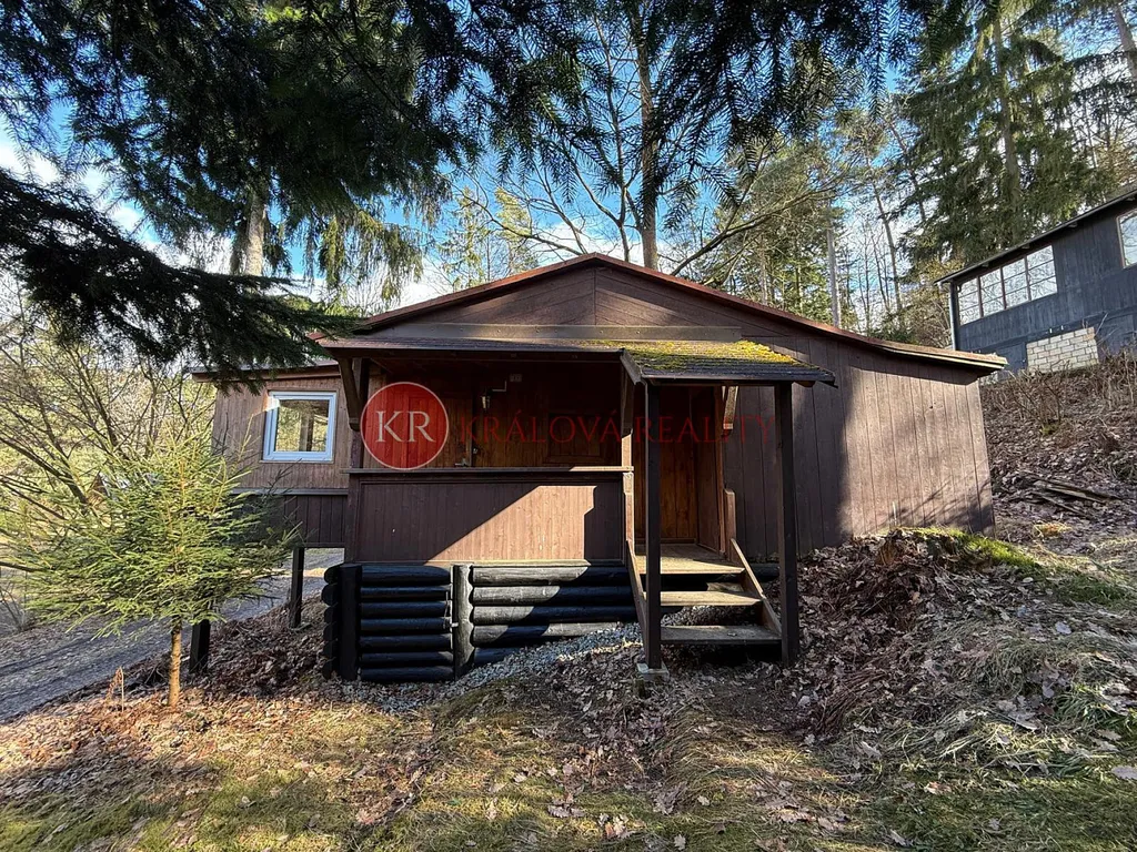 Za chatou se nachází praktický dřevník. Chata stojí na pronajatém pozemku. Ročně se za pronájem pozemku platí 3550,-Kč. Majitel chaty má ze zákona předkupní právo na pozemek.