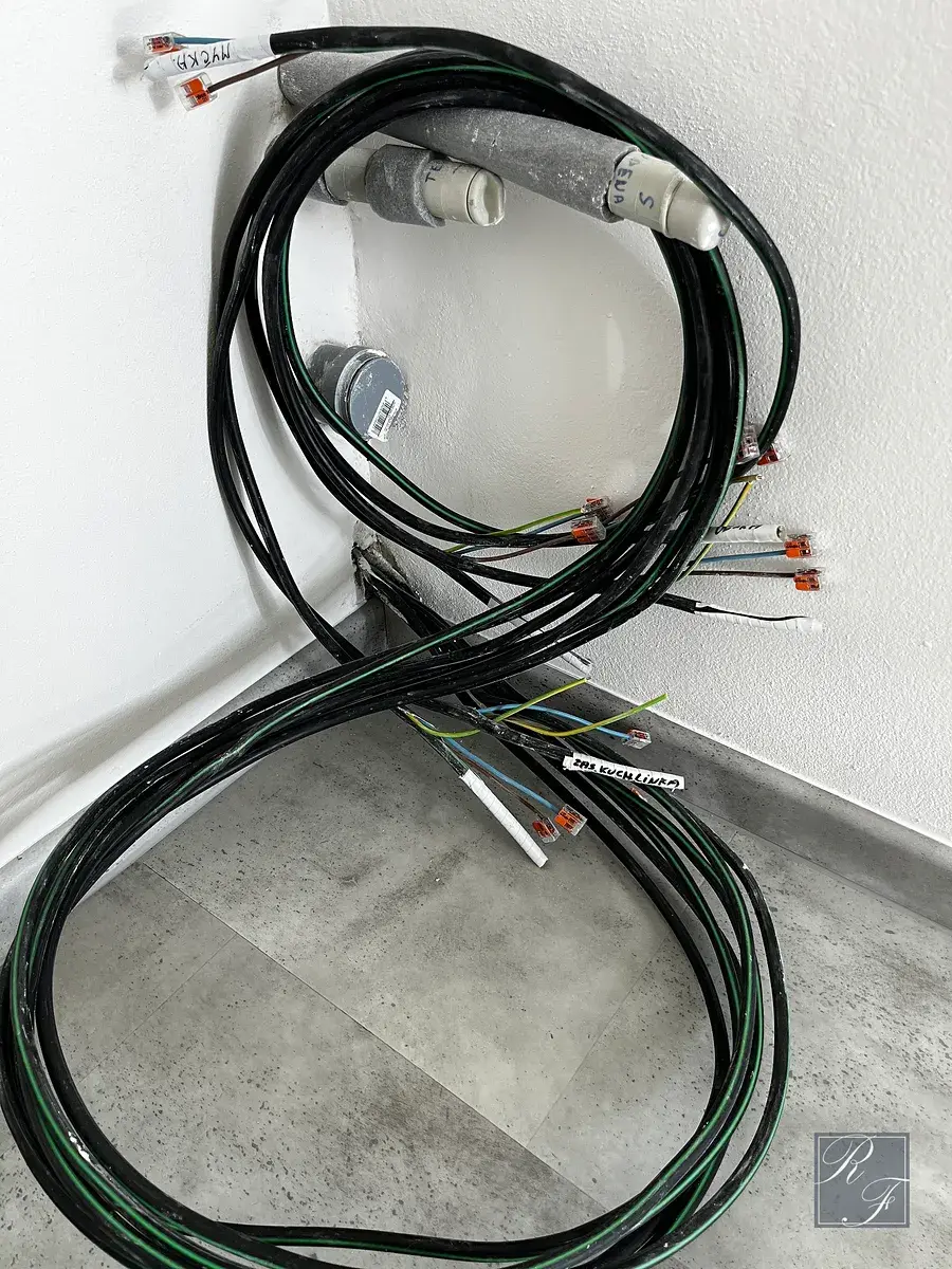 Rekonstrukce bytu byla právě dokončena zkušenou realizační firmou a zahrnovala vše od nivelace podlah, vyzdění obou jader, vodoinstalaci, odpady, vzduchotechniku i elektroinstalaci zakončenou revizní zprávou. Na hlavní i druhou kuchyňskou linku (kterou můžete, ale nemusíte instalovat) jsou připraveny všechny přípojky elektřiny i přívody vody a odpadu tak, aby budoucího vlastníka při návrhu kuchyně nijak neomezovaly a zajistily dodržení platných norem. Kuchyňské linky nejsou součástí nabídky a nový vlastník si je řeší dle svých potřeb.