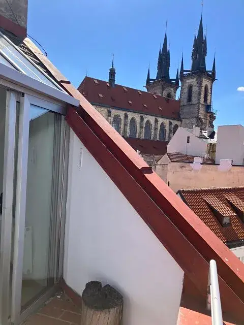 Nabízíme na pronájem zajimávý by t2+kk s galerií a terasou v samém centru Prahy nacházející se ve 4.patře bez výtahu.Tento byt, který je na patře jediný poskytuje soukromí a krásný výhled z terasy na Prahu.Dispozice: vstup, velký obývací pokoj s kuchynským koutem a výstupem na terasu, koupelna s Wc(sprch.kout),ložnice, galerie..k bytu náleží komora na patře.
