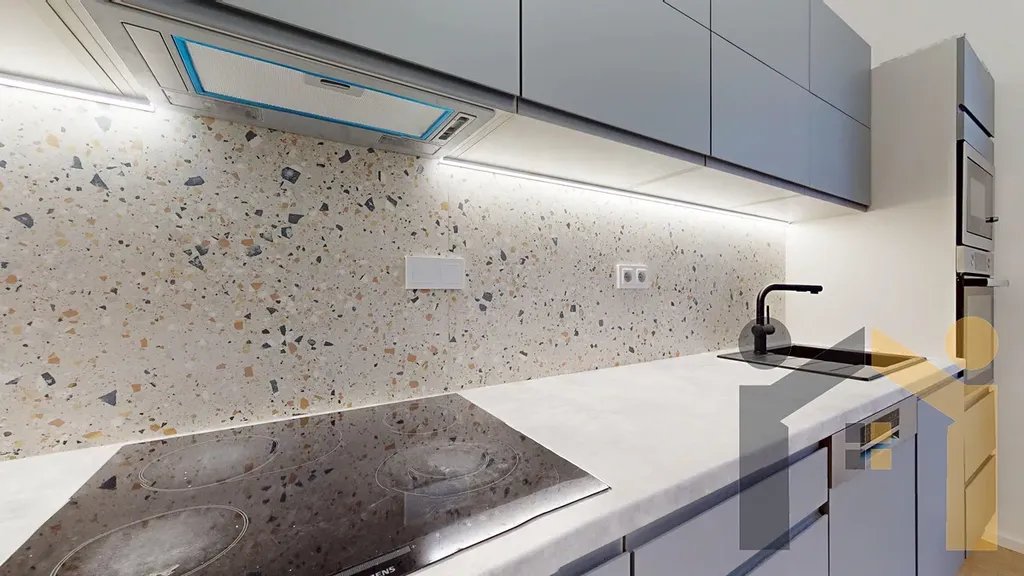 V rámci rekonstrukce bylo přidáno i dostatečné množství zásuvek, položeny nové podlahy v předsíni a kuchyni, koupelna i WC byly kompletně zrekonstruovány a osazeny designovými obklady a světly. V koupelně se nachází sprchový kout a majitelé pořídili budoucím nájemníkům i zcela novou pračku. Kuchyně je rovněž nová s novými vestavěnými spotřebiči a s novou samostatně stojící lednicí.