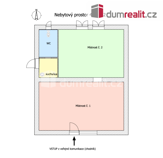 Dumrealit.cz Vám zprostředkuje dlouhodobý pronájem nebytového prostoru o velikosti 46,3 m² v bytovém domu v Karlových Varech, v ulici Moskevská. Nebytový prostor (NP) k pronájmu se nachází v přízemí domu se samostatným vchodem rovnou z ulice (chodník); přední místnost je orientována na jih, zadní místnost a WC na sever; součástí NP je samostatné WC, kuchyňský kout a 2 místnosti, kdy jedna může sloužit jako kancelář a druhá jako zasedací místnost. V současné době jej využívá nájemce; prostory jsou zabezpečeny EZS a mechanicky (mříže oken a vnitřního vstupu u dveří).