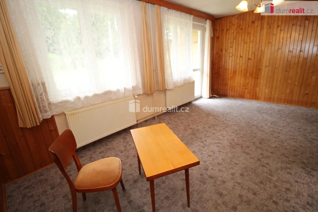Dumrealit.cz Vám zprostředkuje koupi pěkného domu vhodného k trvalému bydlení v obci Stare sedlo u Teplé nedaleko Mariánských Lázní. Cihlový dům (škvárobeton) o dispozici 4+kk a celkové rozloze 120 m² nabízí v přízemí prostorný obývací pokoj s kuchyňským koutem, dále předsíň, halu, plnohodnotnou koupelnu s toaletou, vanou, dále komoru pod schody a technickou místnost přístupnou z předsíně. V patře je pak další toaleta, kde je zároveň umístěn bojler na ohřev teplé vody, dva pěkné velké pokoje, oba s přístupem na balkon a třetí pokoj, který se dá užívat jako pracovna, kancelář, úložná komora či pokoj pro hosty atd.. Okna jsou již plastová, na podlahách je kombinace koberce, dlažby a linolea, stav je velmi udržovaný, funkční, s malými úpravami ihned k nastěhování. Výhodou řadového domku je jeho umístění na kraji což umožňuje příjezd a přístup ze strany přímo na pozemek, kde jsou příjezdová vrata. Z přední strany pozemek není oplocen a na dlouhé příjezdové cestě můžete zaparkovat až 4 automobily za sebou, stejně tak můžete parkovat či zastavit na přilehlé cestě, která již na konci vede do lesa. Pozemek o celkové rozloze 487 m², kdy větší část je za domem, je na konci pozemku ukončen malým svahem (cca poslední 3 metry), kde by bylo ideální místo na vytvoření okrasné skalky, dále pozemek nabízí dost prostoru pro další zahrádkářské aktivity, každý dle svého uvážení a potřeby. Voda je z obecní studny, ze které čerpají všechny 4 řadové domky, vody je zde dostatek pro všechny. Odpad je do společného septiku s přepadem, který se nyní čerstvě vyvezl (po třech letech aniž by to úplně potřeboval). Topení zajišťuje kotel na pevná paliva. Chata je na nádherném klidném místě zároveň blízko civilizace, v případě potřeby je nejblíže městečko Teplá, kde je veškerá občanská vybavenost. Kompletně nově byla svedena srážková voda do dešťové kanalizace, kde na kraji pozemku u silnice jsou kompletně nové odpady. Na domě neváznou žádné zástavy ani břemena. Cena zahrnuje právní servis a provizi RK. V případě zájmu Vám doporučíme naše prověřené hypoteční poradce. Ev. číslo: 654876.