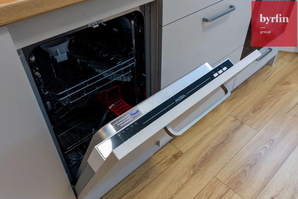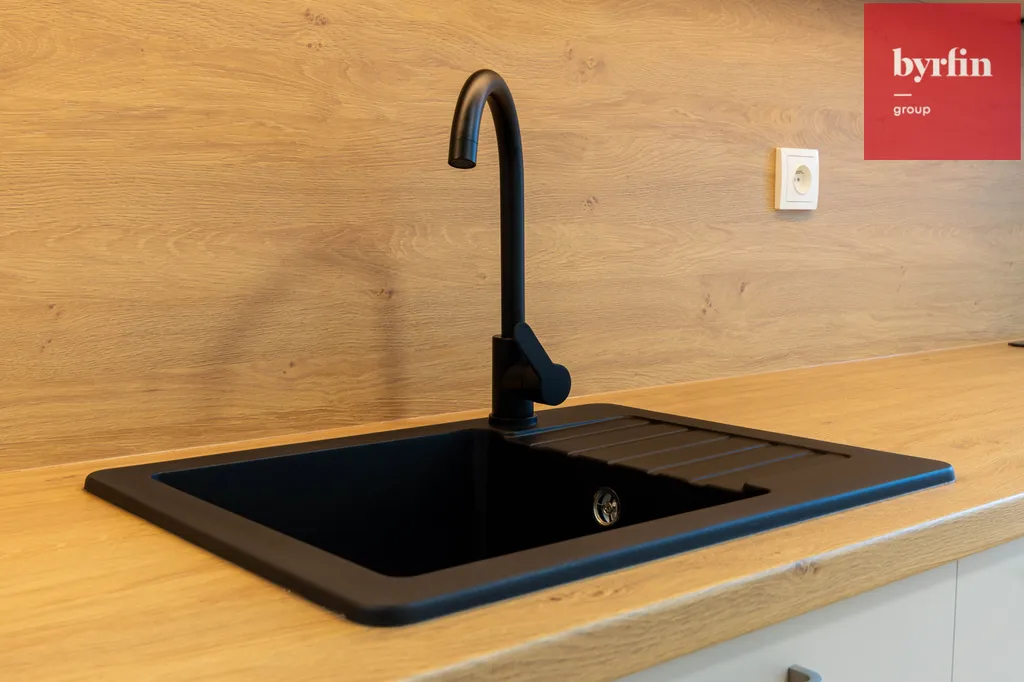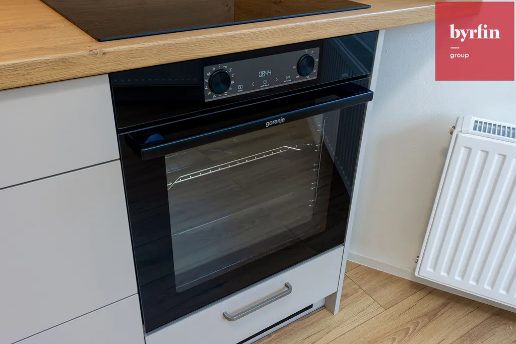 Byt je vybaven kvalitním nábytkem na míru od opavské firmy včetně vestavěných spotřebičů. Interiér je řešen moderně, účelně a s důrazem na maximální využití prostoru. Jedná se o nové, velmi příjemné bydlení.