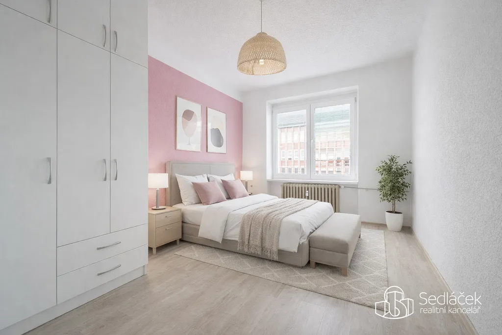 Dispozice bytu nabízí tři samostatné pokoje, a to dětský pokoj, ložnici a obývací pokoj se vstupem na balkon. Kuchyně je řešena jako samostatná místnost s dostatkem prostoru pro jídelní stůl. Na kuchyni navazuje praktická komora, která poskytuje další úložný prostor.
