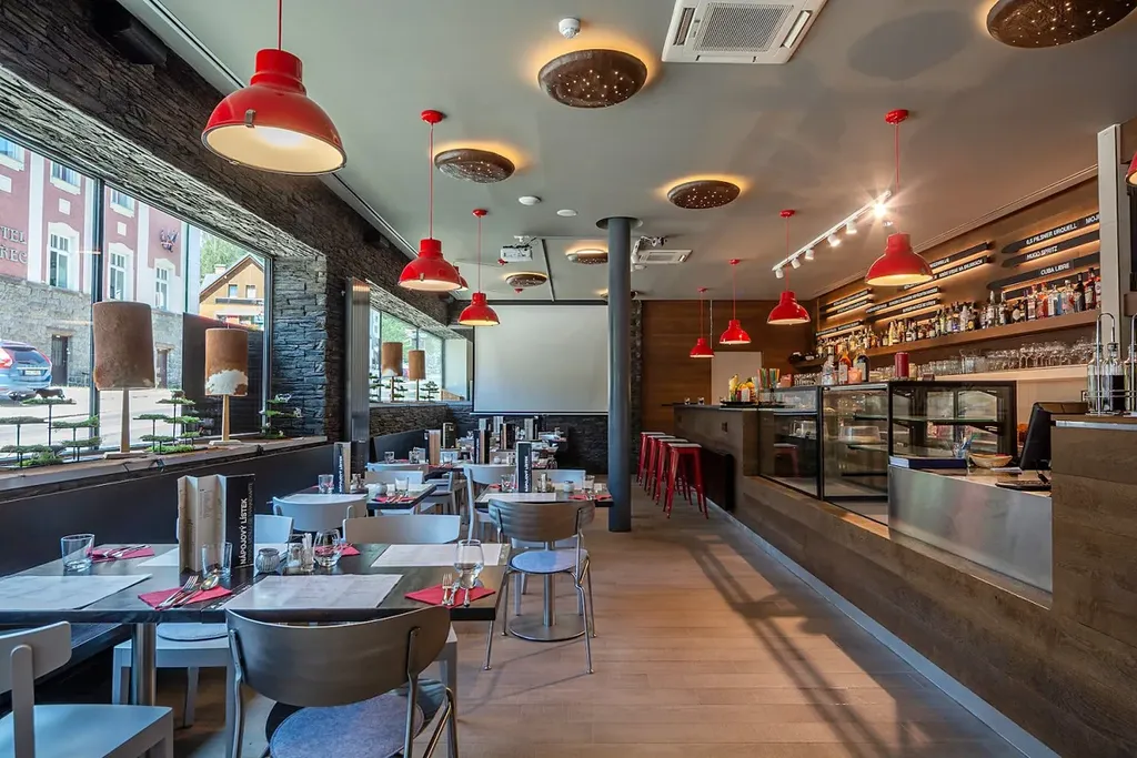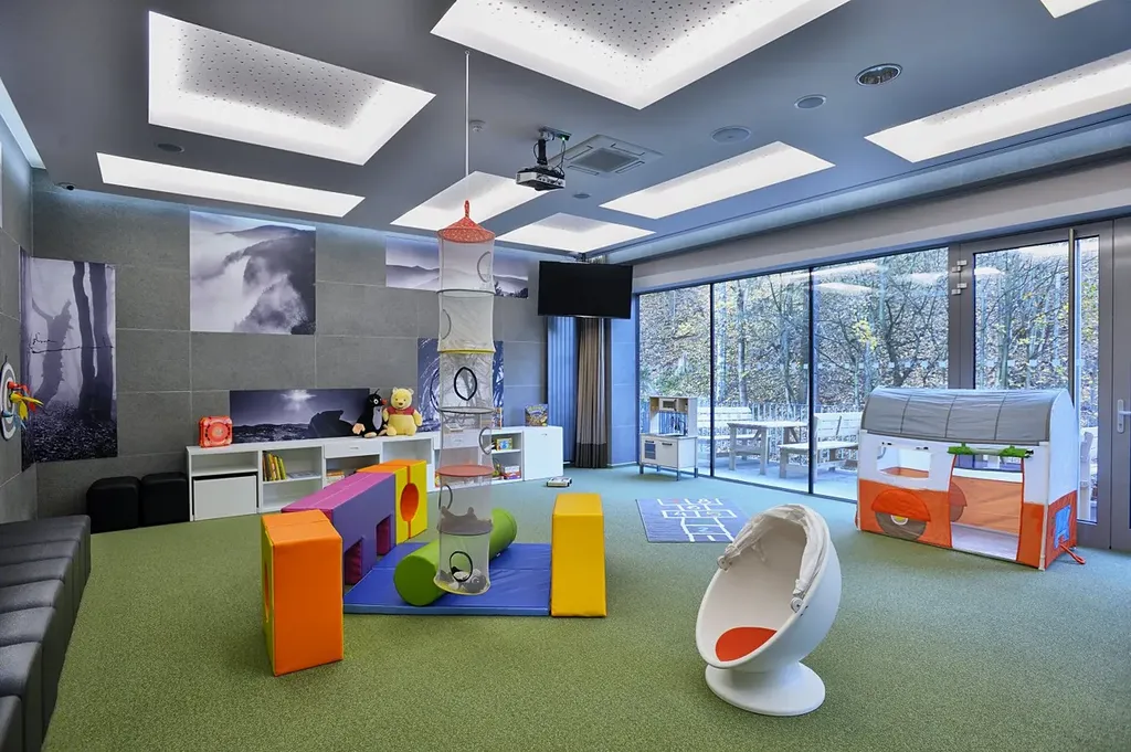 Součástí přízemí hotelu je recepce, restaurace a prostorná dětská herna.