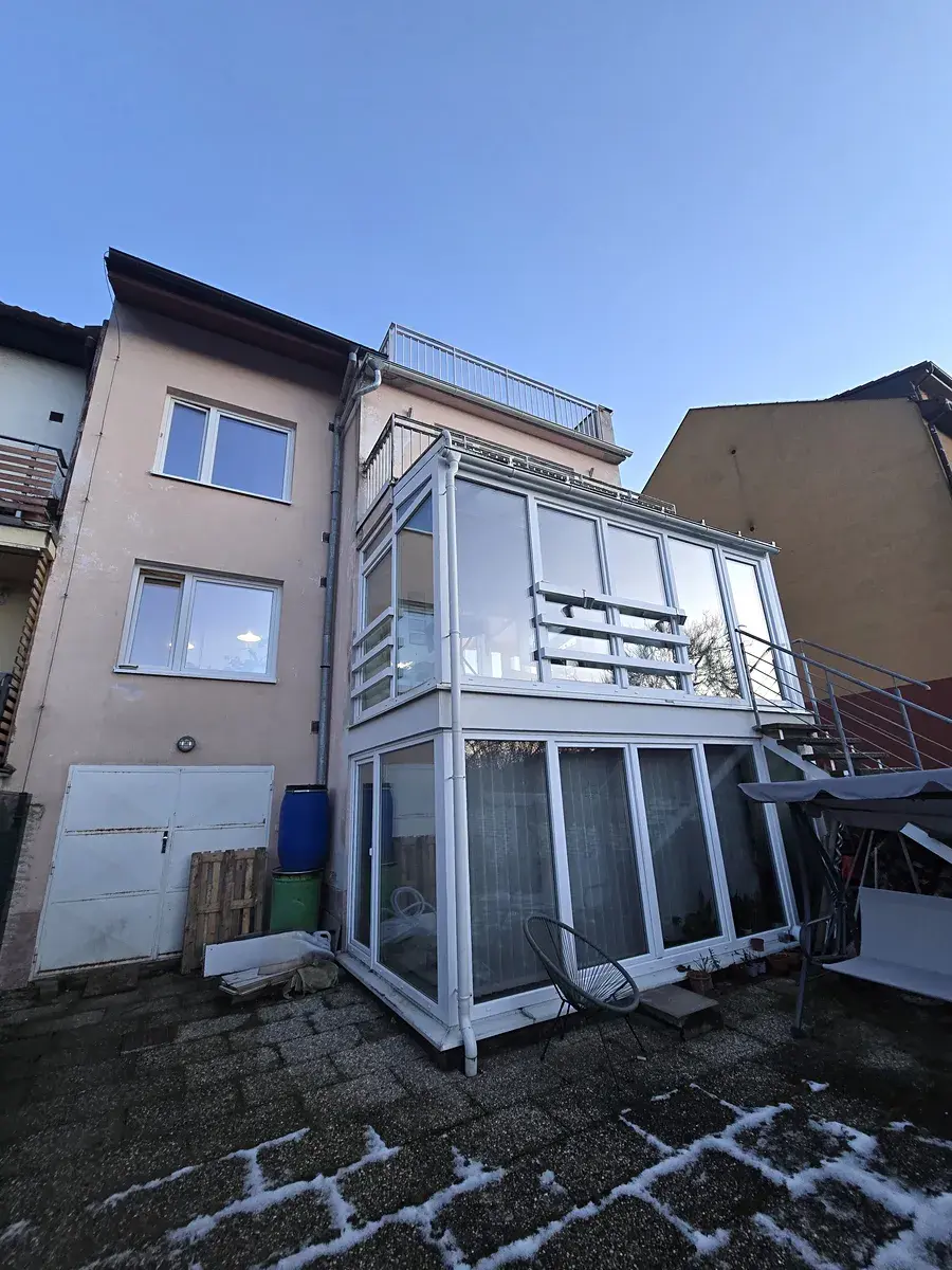 K dlouhodobému pronájmu nabízíme slunný prostorný byt 3+1 (98 m2) s krbem ve zvýšeném 1.NP cihlového rodinného domu s navazující zimní zahradou (18 m2) a parkováním na soukromém pozemku. Nájemce má možnost společného využití krytého bazénu se slanou vodou a užívání zahrady (cca 60 m2), s krásným výhledem do zeleně k jezeru přehrady, v Brně-Bystrci, v klidné ulici Nad Dědinou.