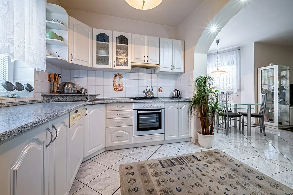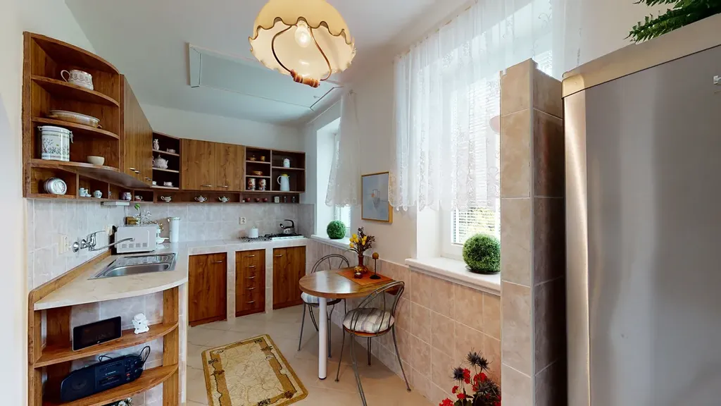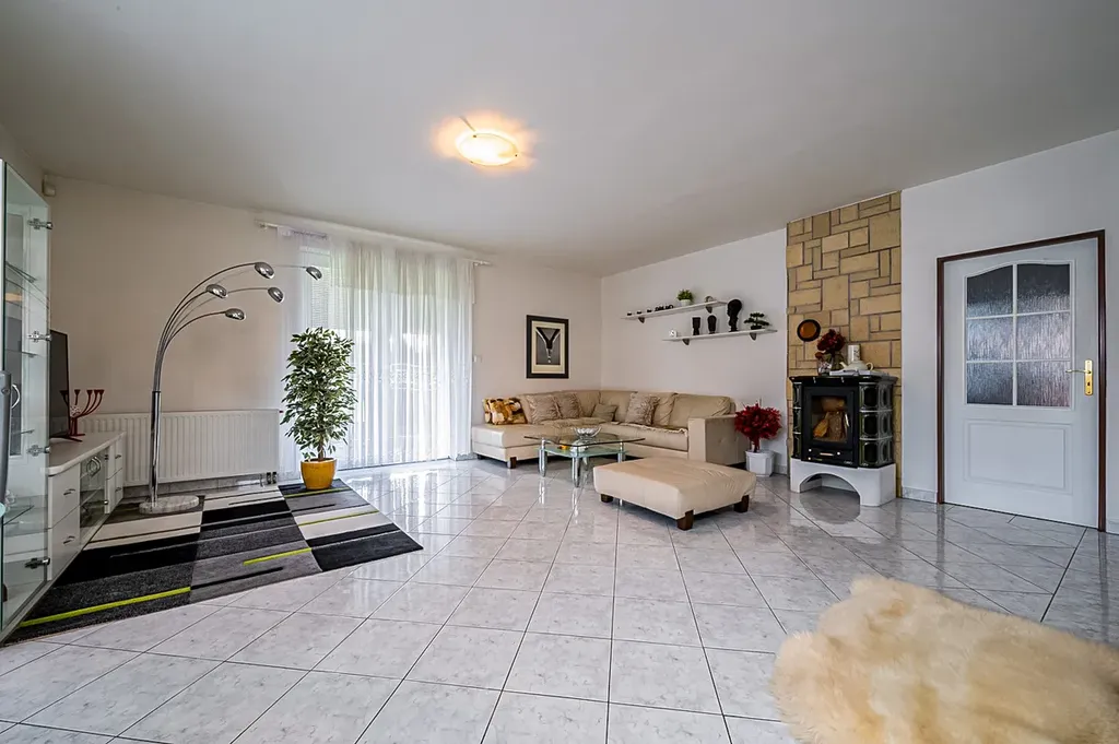 Okna a dveře jsou plastová s horizontálními žaluziemi, topení je ovládáno regulačními hlavicemi, na podlahách je kvalitní velkoformátová dlažba, plovoucí podlaha. Kuchyně je vybavena plynovým sporákem s troubou a digestoří, chladničkou, mikrovlnnou troubou, myčkou. Dům kolaudovaný v roce 2004 byl šetrně užíván a byly pravidelně prováděny kvalitní udržovací činnosti.
