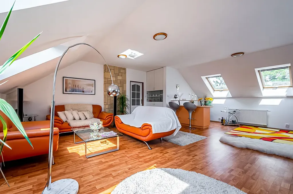 s výstupem na přilehlou zastřešenou terasu orientovanou na jih a dvěma přiléhajícími zastřešenými parkovacími místy.