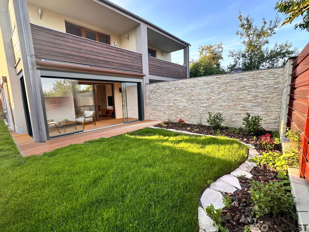 Součástí bytu není sedací nábytek v obývacím pokoji a na terase. Na terase lze případně navíc instalovat prosklenou stěnou s posuvnými dveřmi znázorněnou v přiložené fotografii k vytvoření zimní zahrady a rozšíření vnitřního obytného prostoru. Správa a údržba domu je zabezpečena profesionálním správcem a odpadají Vám tak starosti běžné u rodinného domu.