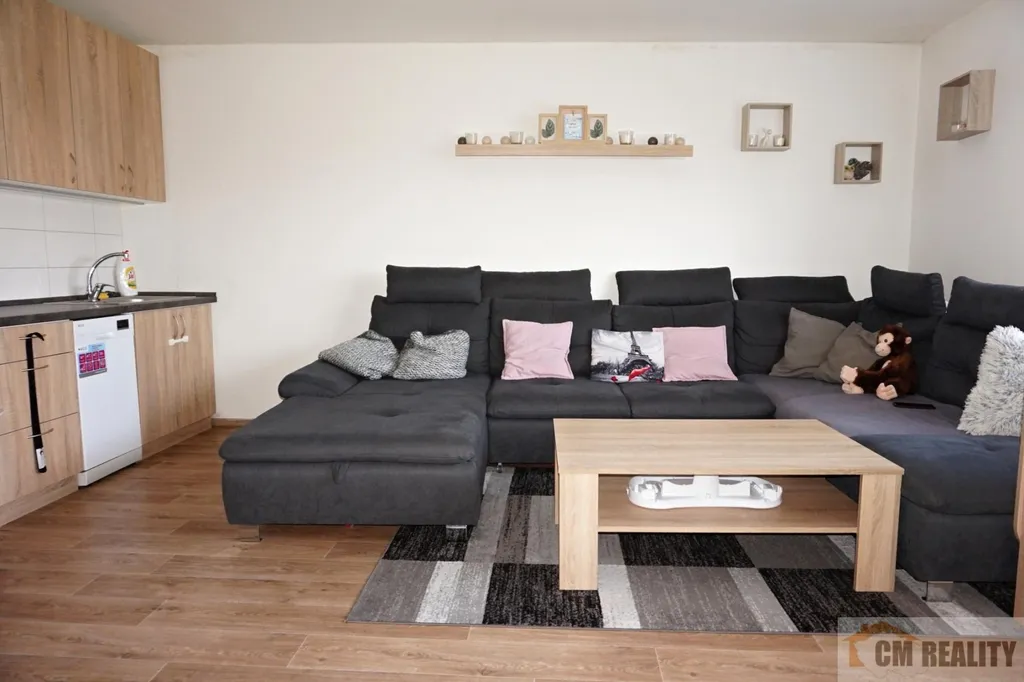 Jedná se o dlouhodobý pronájem cihlového bytu 2+kk o výměře 48 m2. Byt se nachází v 1. patře cihlového rodinného domu, v přístavbě dále od hlavní silnice. Po vstupu do bytu je chodba, kde je vlevo ložnice, za ní navazuje koupelna společná s WC. Chodba pak přechází do prostorného obývacího pokoje s kuchyňským koutem. K bytu je možné užívat venkovní terasu i pergolu s grilem a udírnou s možností posezení na zahradě. V bytě je kuchyňská linka s vestavěnou troubou a varnou deskou, pračka, lednice. Byt je pronajímán bez nábytku.