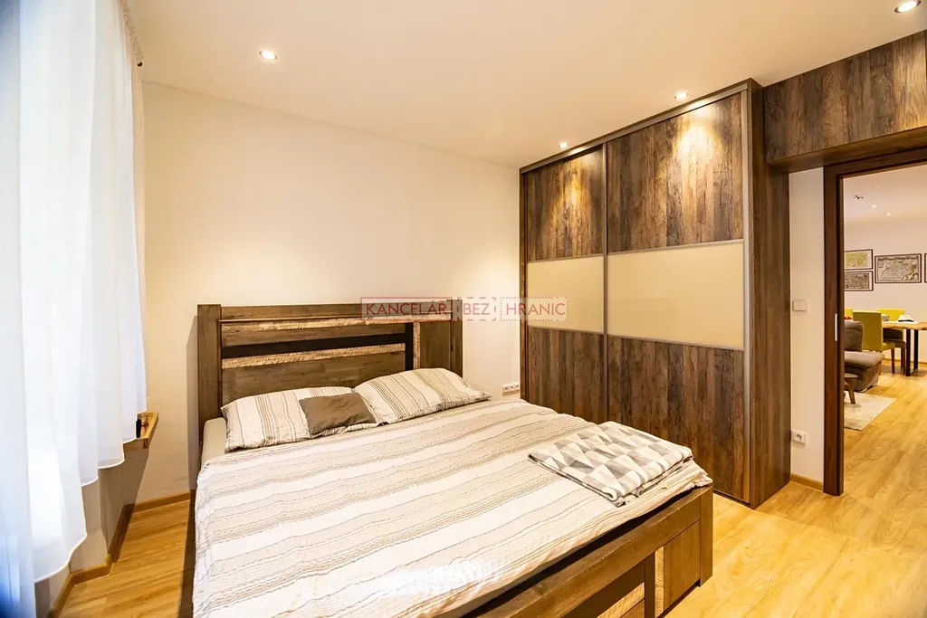 Byt je po kompletní a nákladné rekonstrukci, plně vybavený vkusným nábytkem (viz foto).