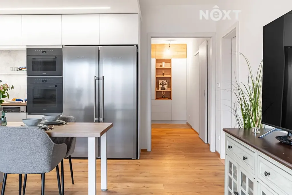Kvalitní provedení bytu zahrnuje dřevěné podlahy, designovou stěrku v koupelně, podlahové vytápění s vlastním okruhem v každém pokoji i koupelně, samostatný kalorimetr, přípravu na venkovní žaluzie a moderní kuchyňskou linku se spotřebiči – indukční varná deska, konvektomat (kombinovaná trouba), vestavěné spotřebiče.