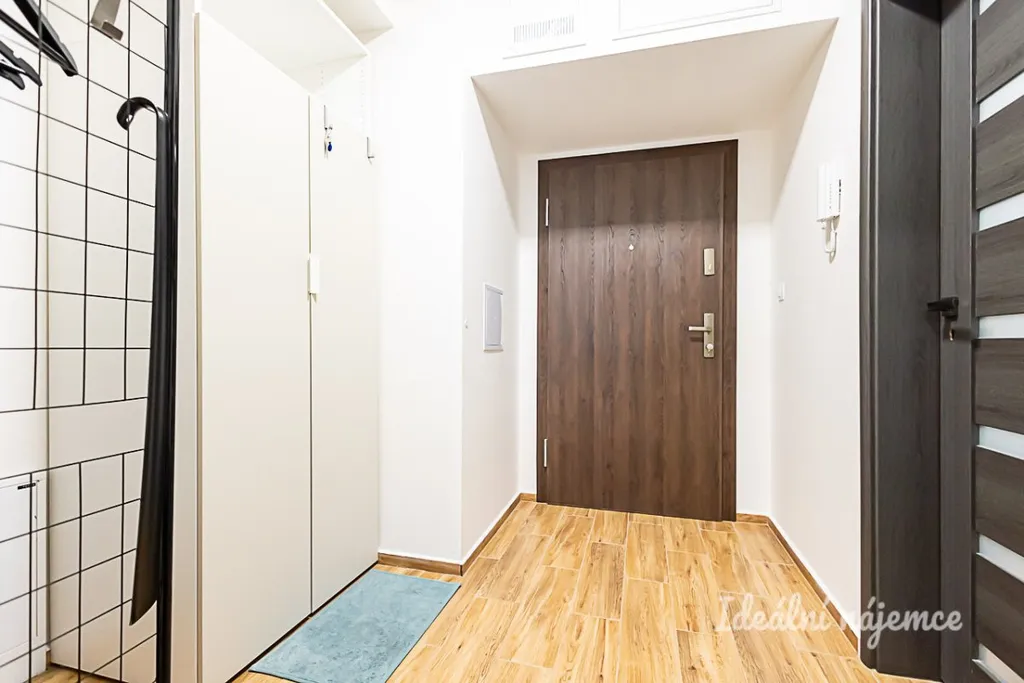 Interiér bytu působí díky velkým proskleným plochám velmi vzdušně a nabízí se jako částečně zařízený, což vám dává skvělou příležitost dotvořit si domov podle vlastního vkusu. Srdcem bytu je prostorná obývací část s jídelním koutem, která je vybavena pohodlnou sedací soupravou a televizí. Z tohoto prostoru plynule vstoupíte na nadstandardně rozměrnou terasu, která přímo vybízí k odpočinku nebo letnímu posezení u kávy. Moderní kuchyňský kout je plně vybaven kvalitními spotřebiči včetně lednice s mrazákem, elektrické trouby, varné desky, digestoře a myčky, přičemž nabízí dostatek praktického úložného prostoru. Na obytnou zónu navazuje útulná ložnice s manželskou postelí. Koupelna disponuje vanou, umyvadlem, toaletou, úložným nábytkem a je vybavena také pračkou.
