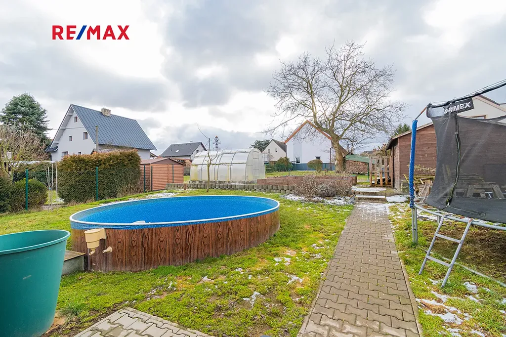 Před domem je parkoviště pro tři automobily, za domem pak nalezneme relaxační zónu s terasou a bazénem. Ale také se skleníkem a vyvýšenými záhony. Srdce zahradníka zaplesá.