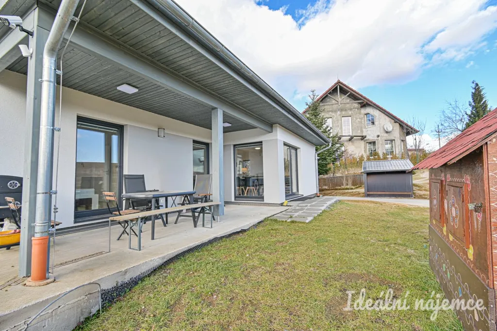 Dispozice domu dále nabízí tři samostatné ložnice, které poskytují dostatek soukromí pro všechny členy domácnosti nebo prostor pro zřízení domácí pracovny. Velmi praktickým prvkem je oddělená technická místnost s pračkou a prostorná koupelna vybavená jak vanou pro relaxaci, tak sprchovým koutem pro rychlé ranní osvěžení. Dům se nabízí kompletně vybavený nábytkem přesně tak, jak jej vidíte na fotografiích, což vám ušetří spoustu starostí se stěhováním.