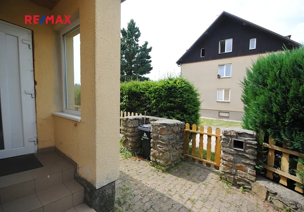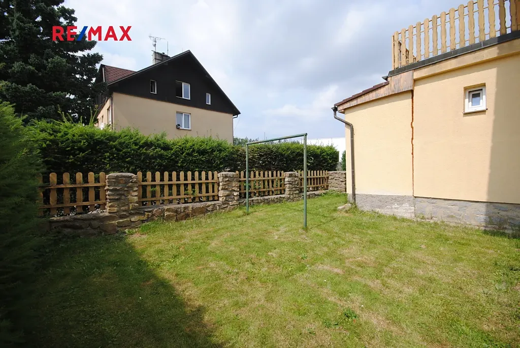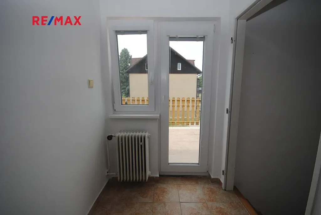 Nabízíme k prodeji mezonetový byt v rodinném domě, který byl prohlášením vlastníka rozdělen na dvě velké, stavebně i provozně zcela oddělené bytové jednotky, každá s vlastním vstupem, zahradou, terasou i sklepem. Reálně tak majitel bydlí v polovině dvojdomku. Prodávaná bytová jednotka má dispozici 4+1 s podlahovou plochou 102 m2, terasu v patře domu o ploše 16 m2 a sklep taktéž o výměře 16 m2. Velkou předností tohoto bytu je oplocená zahrada o celkové ploše 237 m2. Mezonetový byt je situován do přízemí a patra, přičemž přízemí je dispozičně členěno na závětří, vstupní chodbu s komorou, samostatným WC a spíží, na kterou navazuje velkoprostorová obytná kuchyně, samostatný obývací pokoj a koupelna s vanou. Horní podlaží bytu je přístupné po schodišti z prostoru obytné kuchyně a dispozičně nabízí centrální chodbu ze které jsou jednotlivé vchody do dvou větších pokojů a jednoho malého pokojíku a menší koupelny se sprchovým koutem. Taktéž vstup na terasu je z této chodby. Sklepní prostor je využitý především jako kotelna (kotel na dřevo, elektrokotel) a sklad paliva. Ohřev vody zajišťuje elektrický bojler v koupelně.