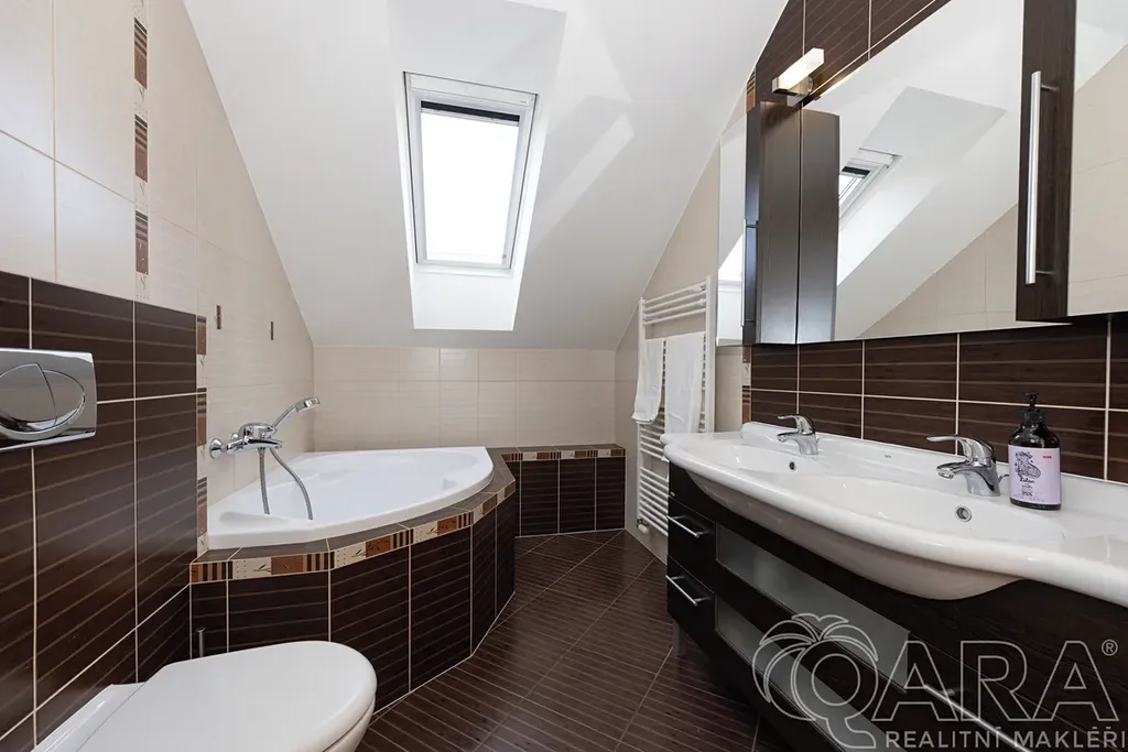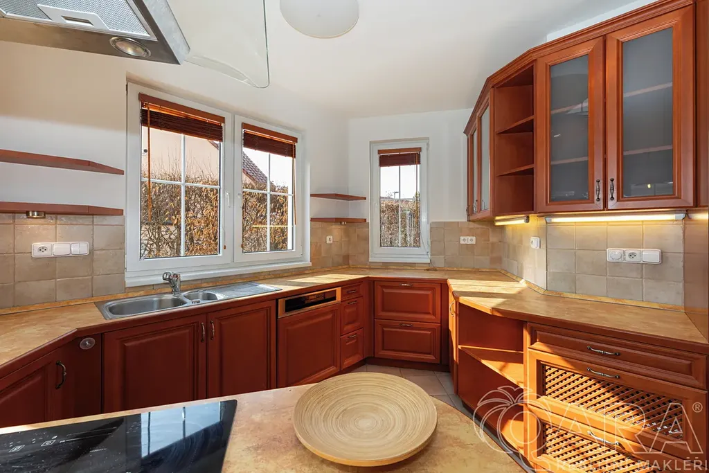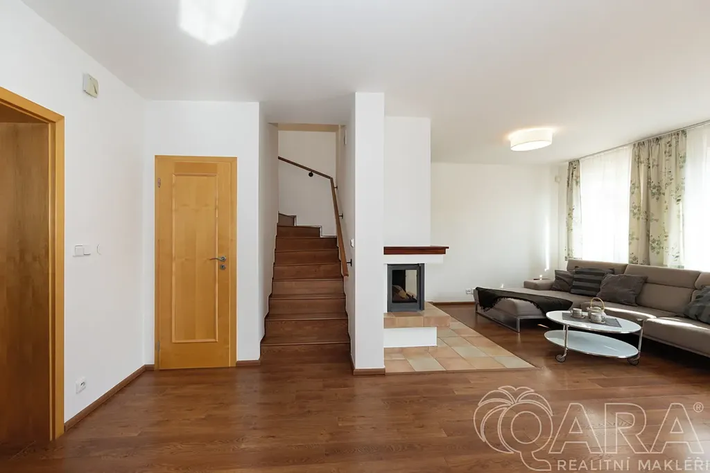 Nabízíme k prodeji krajový řadový rodinný dům v atraktivní a klidné části obce Dolní Břežany, okres Praha-západ. Dům disponuje obytnou plochou 146 m² a zastavěnou plochou 89 m² a nachází se na pozemku o celkové výměře 485 m². Součástí dispozice přízemí domu je prostorný obývací pokoj s krbovými kamny a kuchyňským koutem s na míru vyrobenou kuchyňskou linkou. V patře jsou pak 3 pokoje, kde u jednoho z nich je také na míru zhotovená praktická šatna. Součástí domu je prostorná garáž a prakticky řešený půdní prostor s dostatkem úložného místa. Vytápění zajišťuje plynový kotel a horní podlaží má klimatizaci. K nemovitosti náleží krásná vzrostlá zahrada se zahradním domkem, která poskytuje příjemné zázemí pro relaxaci i hobby aktivity.