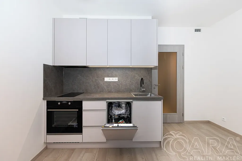 Byt je dispozičně řešen vstupní chodbou s vestavěnou šatní skříní, koupelnou s toaletou, sprchovým koutem, a dále obytnou místností s kuchyňskou linkou a vstupem na lodžii. Byt je orientován mimo rušnou silnici a tramvajovou trať, což zajišťuje klidné bydlení i příjemný výhled do vnitrobloku. Součástí vybavení je kuchyňská linka s jídelním stolem, velká vestavěná skříň, robotický vysavač a modem pro připojení k internetu. K bytu náleží také sklepní kóje v suterénu domu. Byt se vyznačuje velmi nízkými provozními náklady, energetická náročnost budovy je třídy B a je vybaven rekuperační jednotkou. Zúčtovatelné zálohy činí 2.500,-Kč měsíčně, plus elektřina a do budoucna fond oprav.