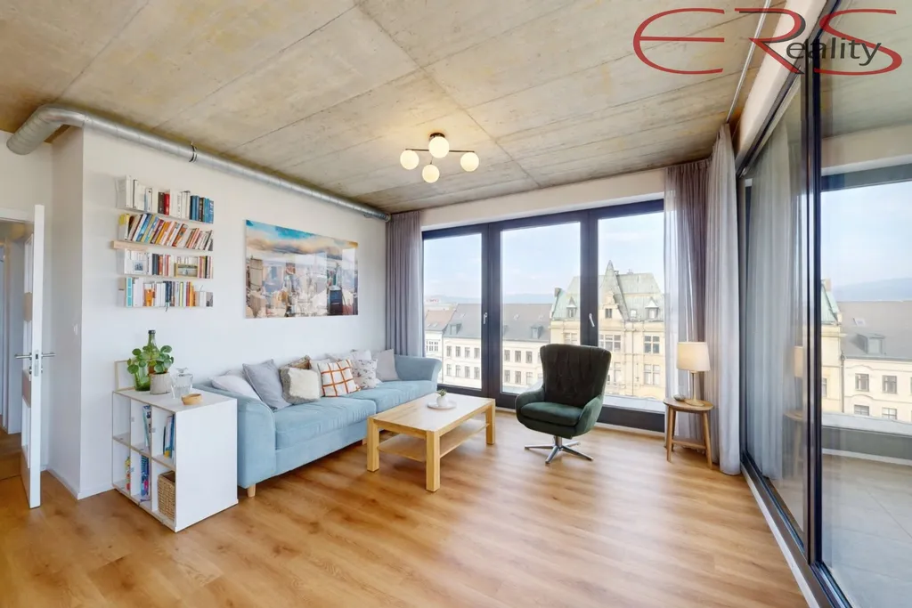 Z oken máš Ještědský hřeben i staré město. Ráno kafe s Ještědem, večer světla Liberce. A pořád jsi doma.