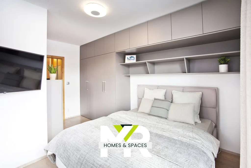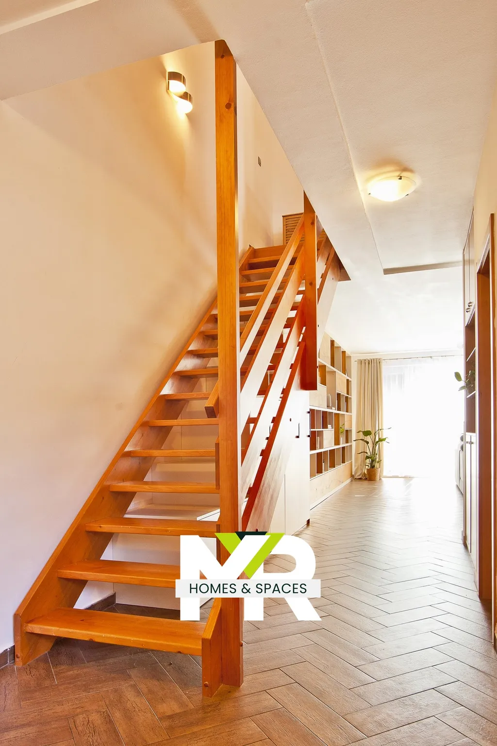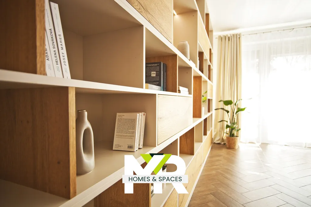 Přízemí tvoří vstupní část, samostatná toaleta a otevřený obytný prostor s kuchyní. Obývací část je orientována do zahrady a díky francouzským oknům působí přirozeně světlým dojmem. Elektrický krb vytváří klidnou atmosféru a můžete si s ním i zatopit a vestavěná knihovna s podsvícením dodává interiéru hloubku a charakter. Kuchyňský kout je plně vybaven – indukční varná deska, trouba, digestoř, myčka i mikrovlnná trouba jsou samozřejmostí.