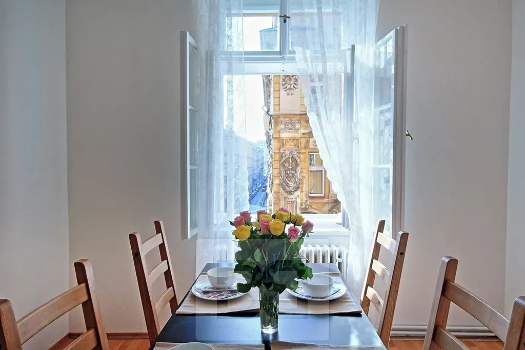 Byt se nachází v krásném, nově zrekonstruovaném architektonickém domě s atriem kousek od Národního divadla a Národní třídy. Celý dům prošel rekonstrukcí.