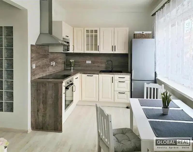 Nabízíme k pronájmu cihlový byt 2+1 v ulici Erbenova v Jihlavě. Byt je po zdařilé rekonstrukci a nachází se ve 3. patře cihlového domu. Výměra bytu je 60 m2. Je kompletně zařízen a vybaven (kromě nádobí a lůžkovin) - tak jak vidíte ve fotogalerii. Kuchyňská linka je vybavena veškerými spotřebiči (sklokeramická varná deska, trouba, mikrovlnná trouba, myčka nádobí, kombinovaná lednička s mrazákem), pračka. Obývací pokoj je zařízen základním nábytkem, sedací soupravou, smart TV, a navíc elektrický krb. V ložnici se nachází manželská postel, komoda, noční stolky a velké šatní skříně. Hlavní světla v bytě jsou s ovládáním barevnosti a intenzity svícení a doplňují je další led svítidla - lampy, podhledy.