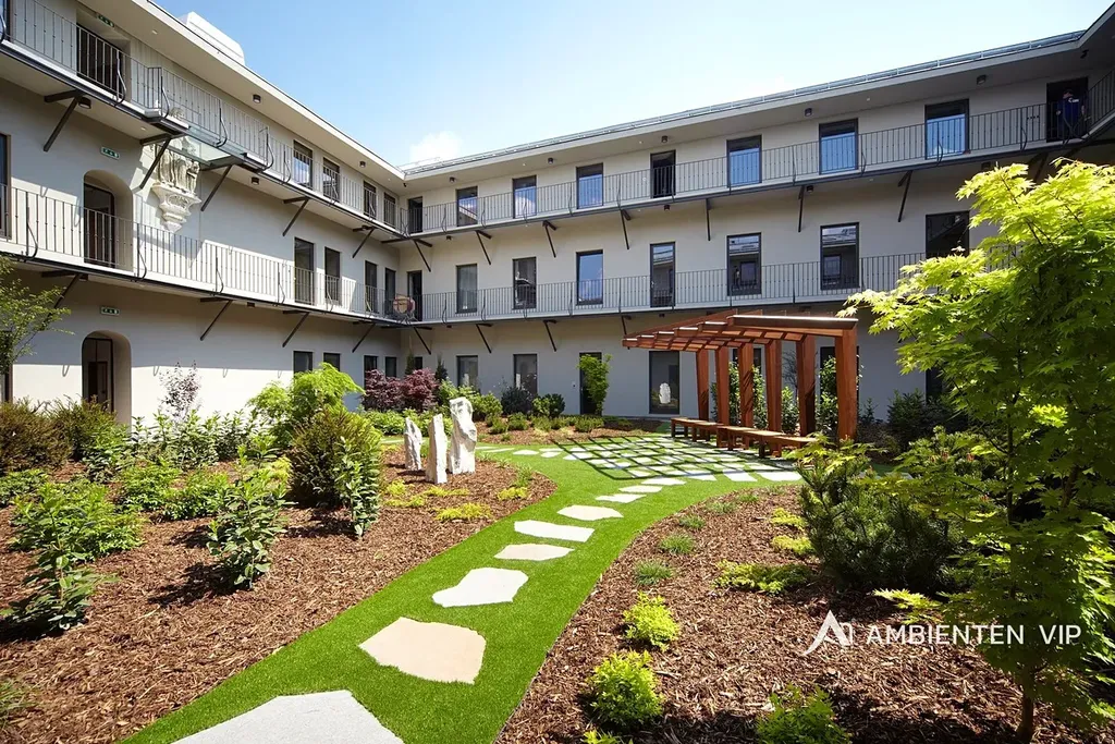Veškerá občanská vybavenost v blízkosti bytového komplexu - restaurace, kavárny, obchody, lékárna, bankomaty, pošta atd.