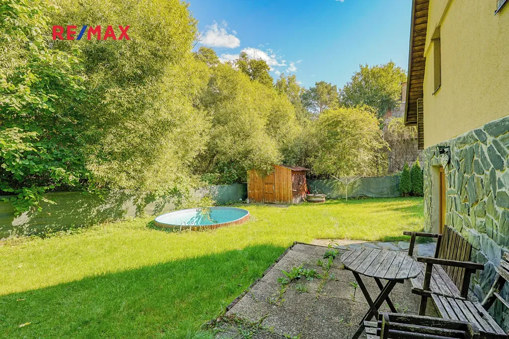 Dům je rozdělen do tří podlaží, v 1. podlaží se nachází vstupní chodba a místnost kterou lze využít například jako dětský pokoj. Ve 2. podlaží se nachází obývací pokoj s krbem, kuchyní a koupelnou se sociálním zázemím. Ve 3. podlaží nalezneme další pokoj který lze využít například jako dětský pokoj, ložnici a nebo pracovnu. Dále je na zahradě k dispozici polozapuštěný bazén a domek pro zahradní náčiní. Díky vysokým vzrostlým stromům po obvodu pozemku nabízí zahrada dostatek klidu a soukromí. Dům prošel v roce 2016 kompletní rekonstrukcí včetně zateplení, je vybaven plastovými okny s dvojskly, elektroinstalací kompletně v mědi, plovoucími podlahy a střechou z plechové taškové krytiny. Vytápění je zde řešeno pomocí krbu a ohřev vody pomocí elektro bojleru.