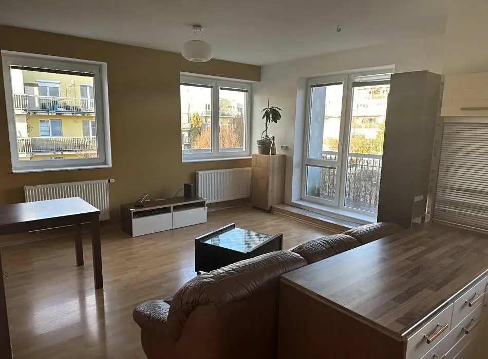 Byt se nachází v novostavbě ve druhém patře s výtahem. Byt je zařízen nábytkem a kuch. linkou se všemi spotřebiči. Kolem celého bytu je terasa. Součástí bytu je garážové stání v podzemí budovy. MHD 100m od domu. Jde o velice pěkné bydlení.