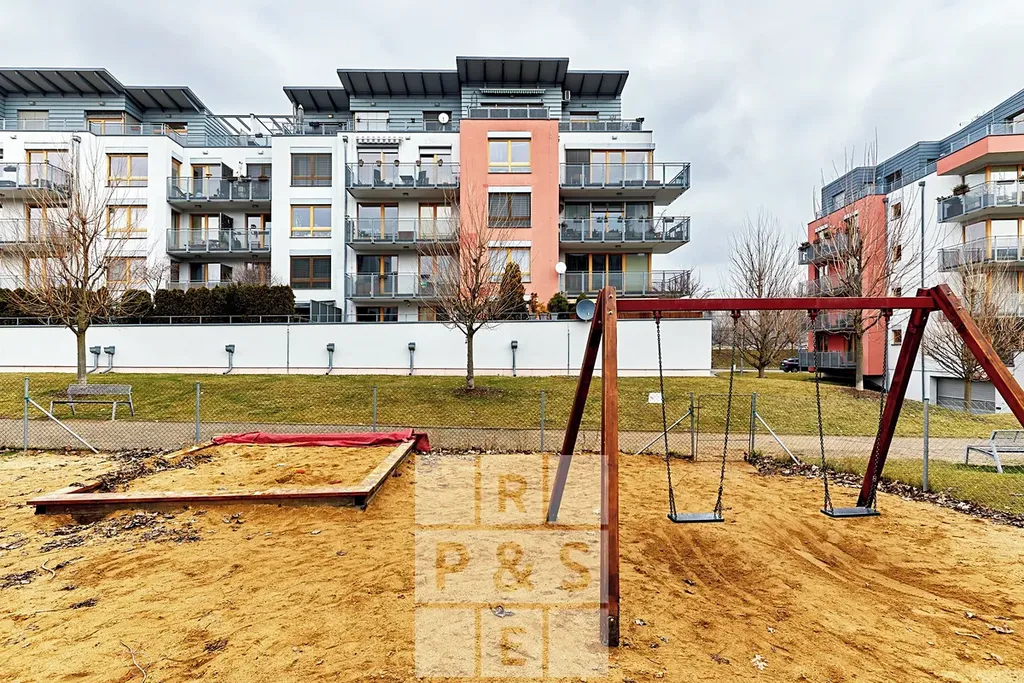 K bytu náleží sklepní kóje. Možnost pronájmu garážového stání za 1 500 Kč měsíčně, případně lze využít parkování v rámci areálu. K dispozici je také prostorná kolárna. Uzavřený areál je střežen 24/7 bezpečnostní službou s pravidelnými obchůzkami.