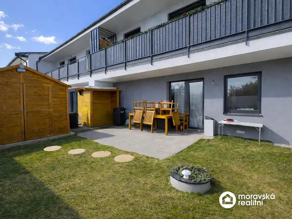 Představujeme Vám bytovou jednotku 3+kk o užitné ploše 64,4 m2, doplněnou o vlastní zahradu o výměře 58 m2 a vyhrazené parkovací stání, situovanou v novostavbě bytového viladomu v obci Veverské Knínice. Byt se nachází v přízemí domu, má samostatný vstup přímo z ulice a je tak ideální i pro bezbariérové bydlení.