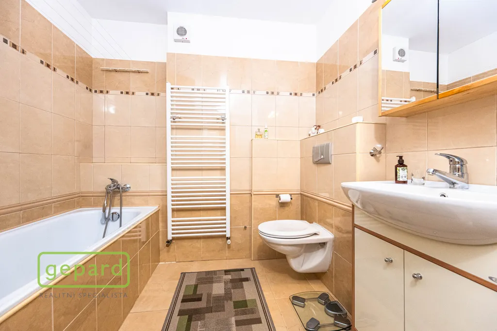 Zděný krajní řadový rodinný dům o obytné ploše 125 m2 nabízí na dvou podlažích dispozici 5+kk včetně dvou balkónů (1x krytý + 1x nekrytý) a je vhodný například pro pár v aktivním věku, rodinu s dětmi, zájemce hledající vícegenerační soužití nebo někoho, kdo ocení existenci instalovaného výtahu/do patra pojízdné sedačky.