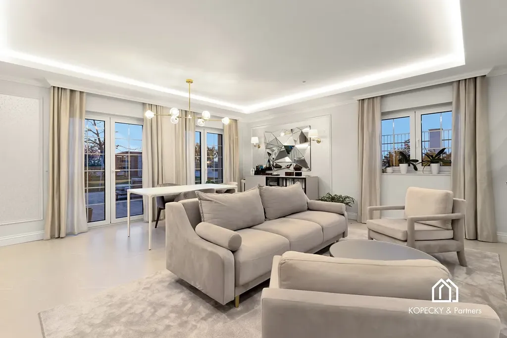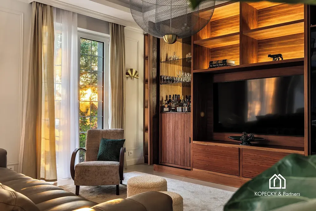 Součástí kupní ceny je nadstandardní interiérové vybavení laděné do stylu art deco, včetně designového nábytku a svítidel od renomovaných značek. Dům je díky tomu připraven k okamžitému užívání bez nutnosti dalších investic do vybavení.