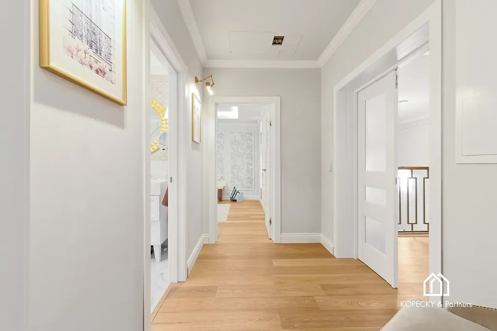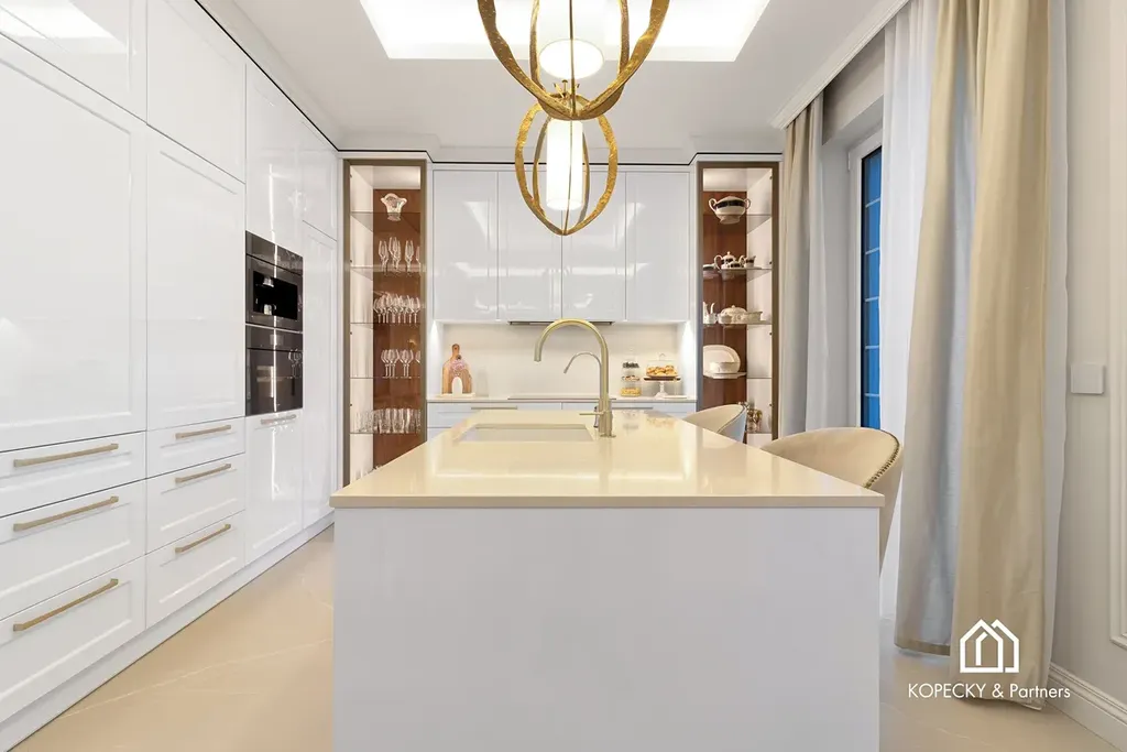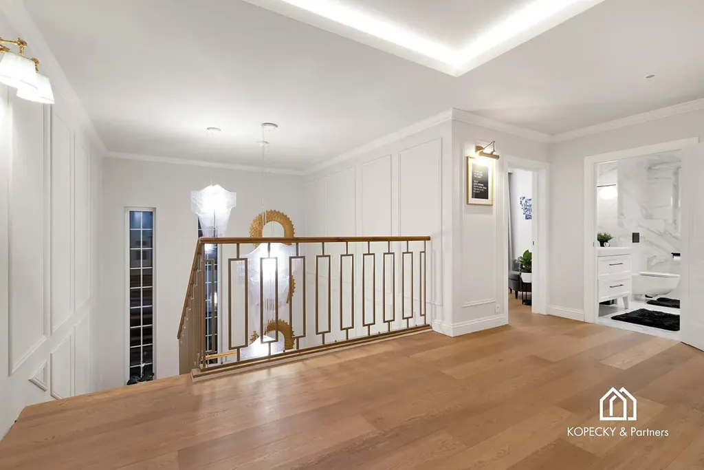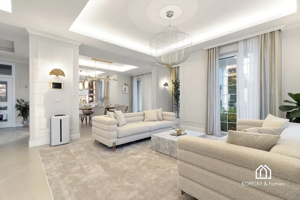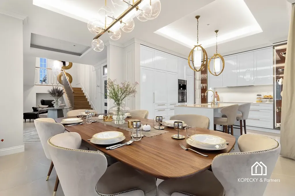 Celý dům je zařízen v duchu sofistikované elegance – od ikonických svítidel navržených Zahou Hadid, přes jídelní stůl Bonaldo pro deset hostů, až po nábytek a osvětlení od značek Eichholz, Moooi či Cattelan Italia. Každý detail byl pečlivě vybrán tak, aby tvořil harmonický celek.