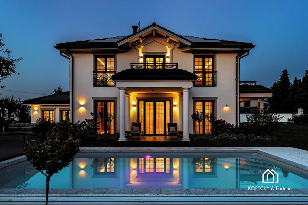 Exkluzivně nabízíme reprezentativní vilu v žádané obci Přezletice, jen pár minut od Prahy. Tato výjimečná nemovitost s užitnou plochou 405 m² stojí na soukromém pozemku o velikosti 2 211 m² a je dokonalou ukázkou propojení moderní architektury, špičkových technologií a nadčasového interiérového designu.