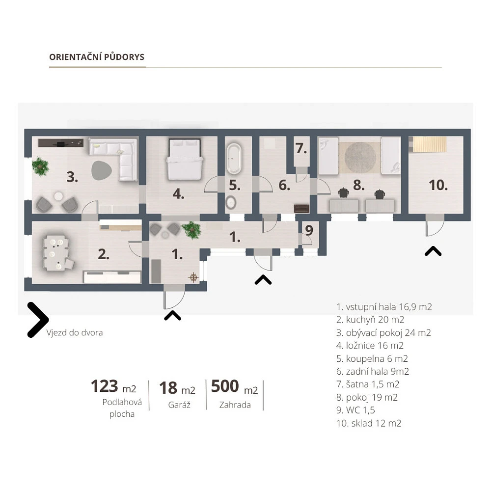 • Dům a uzavřený dvůr (331 m²)