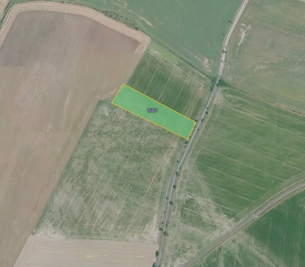 Celková výměra pozemku činí 8 776 m², z toho k prodeji je na ní 4 388 m². Celá plocha je ornou půdou. Parcela leží v rovině přímo u zpevněné cesty. Výhodný je také její pravidelný tvar pro efektivní hospodaření.