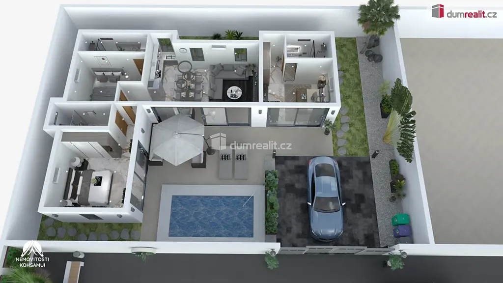 Soukromý bazén a parkovací místo dotváří komfortní a bezstarostný životní styl, který si budete moci naplno užívat.