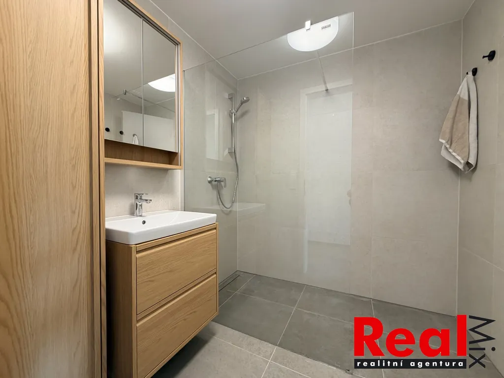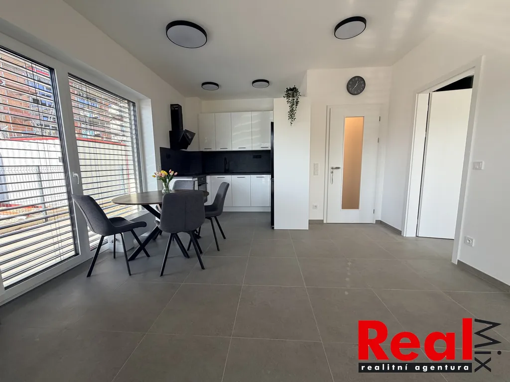 Nabízíme pronájem velmi pěkné a kompletně zařízené novostavby bytu 3KK s terasou, vlastní zahradou 89m2 a venkovním parkovacím stáním v Pohořelicích na ulici U Kasáren. Kolaudace domu 2025/26, v bytě ještě nikdo nebydlel. Byt je situován v 1. NP cihlové novostavby, byl právě dokončený a je kompletně zařízen nábytkem i spotřebiči dle přiložené fotodokumentace (bez postele a sedačky), CP bytu je 68m2 + zahrada + venkovní parkovací stání + sklep. V bytě je pěkná kuchyňská linka na míru včetně veškerých vestavěných spotřebičů, dále je byt kompletně zařízen nábytkem i spotřebiči dle fotodokumentace (pouze bez postelí a sedačky), na podlahách je v celém bytě kvalitní velkoformátová dlažba, koupelna je s velkým sprchovým koutem, samostatné WC, přístup na zahradu je ze všech místností. V oknech jsou venkovní elektrické žaluzie. K bytu patří zděný sklep 2m2 přímo na patře. Orientace bytu je na jihozápad. Byt se nabízí vybavený dle fotodokumentace, pěkná kuchyňská linka, velké množství prostorných skříní, spotřebiče, jídelní stůl atd. Nízké měsíční náklady na bydlení. Parkovací stání přímo před domem. V obci kompletní občanská vybavenost (nově supermarket a obchodní centrum 2 min. od domu, lékaři, školky, škola atd.), rychlá dostupnost do Brna (do 15ti minut). Majitel požaduje vratnou kauci ve výši min. 30 tis. Kč + provize RK. Volné ihned. Více info + prohlídky v RK.