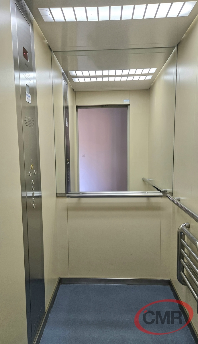 2. patře ze 3 s výtahem. Dispozice zahrnuje obývací pokoj s kuchyňským koutem (myčka, trouba s indukční deskou), samostatnou ložnicí, odděleným WC a předsíň s šatní stěnou.