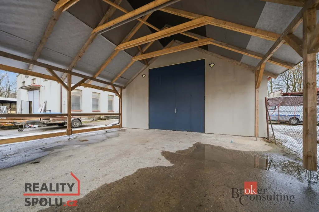 Vyhrazený krytý sklad má plochu cca 56 m², pozemek celkem 243 m² a je možné ho také využít jako plochu pro manipulaci a skladování nejen vevnitř, ale i pod širým nebem.
