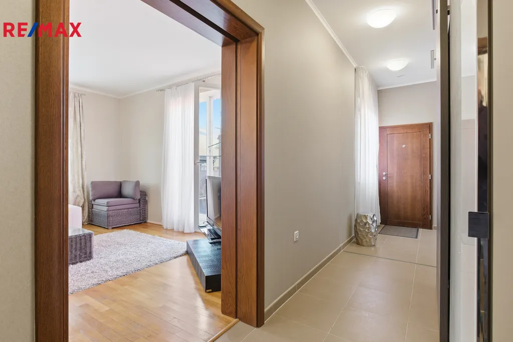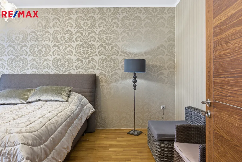 Byt je kompletně vybaven a připraven k okamžitému nastěhování. Interiéru dominují masivní interiérové dveře, kvalitní dřevěné parkety a elegantní křišťálové lustry, které dodávají prostoru nádech luxusu. Kuchyň je vybavena moderními spotřebiči, včetně nové myčky nádobí a nové trouby.