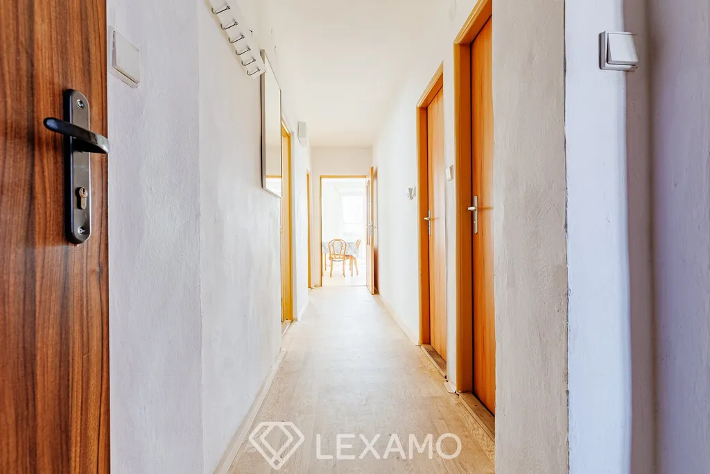 Dispozice zahrnuje obývací pokoj, dvě ložnice, kuchyň, koupelnu a samostatné WC. Součástí bytu je také prostorný balkon, který poskytuje příjemné místo k odpočinku.