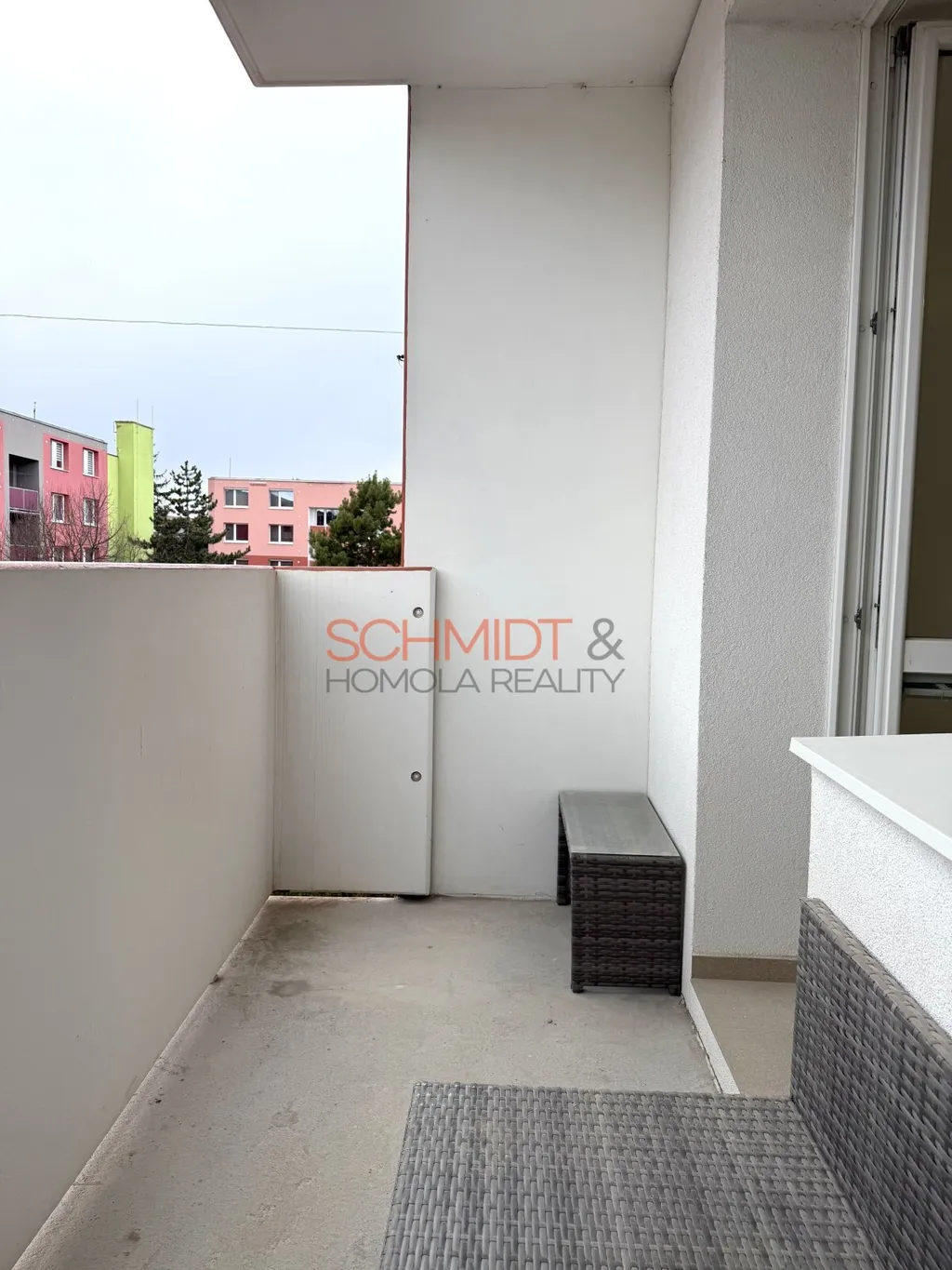 K bytu náleží balkon a sklepní kóje a příjemným bonusem je také výhled směrem na mandloňové sady. Byt je nezařízený, připravený k okamžitému nastěhování. Součástí je nová kuchyňská linka se spotřebiči: trouba, digestoř, myčka, lednice a mrazák. Dispozice nabízí dostatek prostoru pro rodinu i pro ty, kdo potřebují samostatný pokoj na práci. Parkování je možné u domu na veřejném parkovišti.