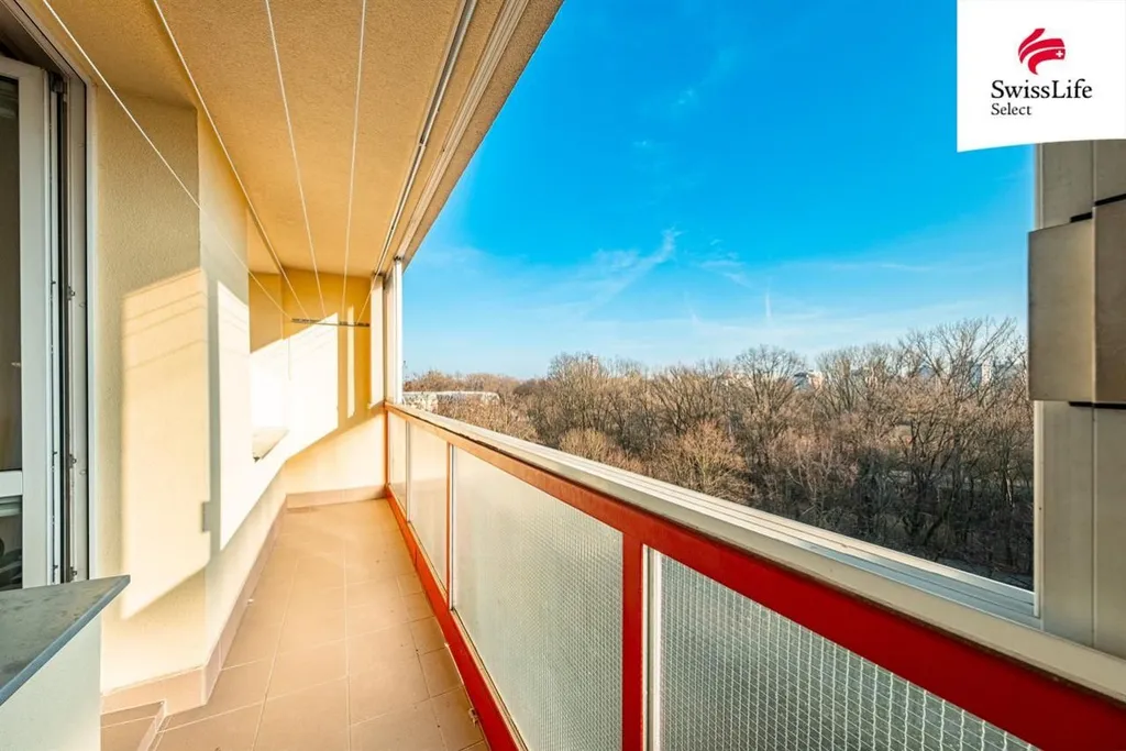 - Velká zasklená lodžie přes celou šířku bytu, přístupná přímo z bytu. Díky zasklení může sloužit jako zimní zahrada příjemné místo pro kávu, relax i posezení na jaře, létě a na podzim.
