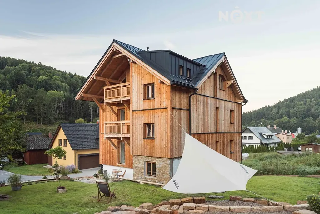 Kvalita je zde znát v každém detailu. Bezúdržbová fasáda dovezená z Rakouska, interiérové obložení ze stoletého italského domu, které v sobě nese příběh a autenticitu, ručně vyráběná izolační okna s trojskly ze sibiřského modřínu od renomované firmy Kolovrat z Lesních Albrechtic, interiérové dveře od truhlářské dílny Vais z Vidonic. Tepelný komfort zajišťuje špičkové tepelné čerpadlo Buderus a celek korunuje hliníková střecha Prefa se zárukou 40 let. Každý materiál byl vybrán s maximální pečlivostí. Tohle vše je však jen zlomek toho, co tento horský skvost skutečně nabízí.