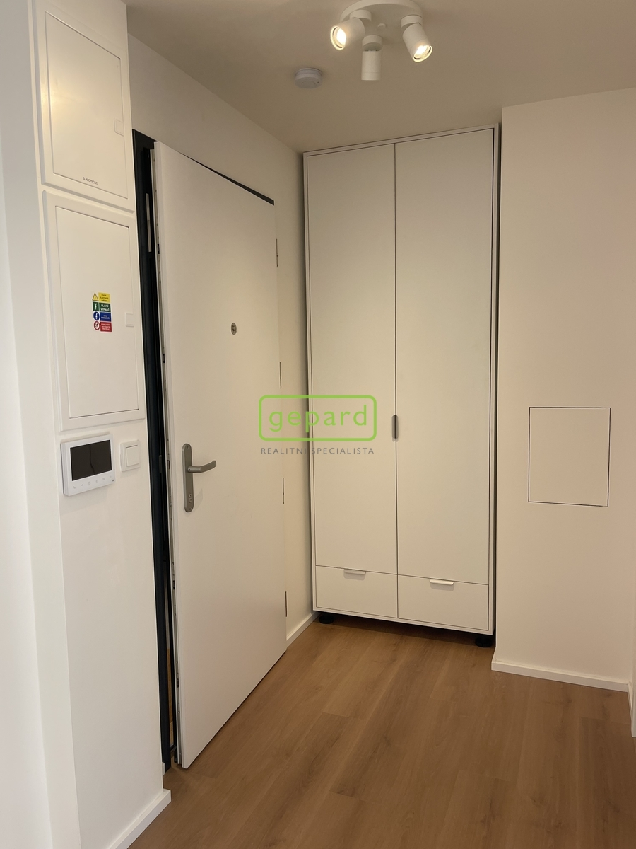 Byt je tvořen vstupní chodbou vybavenou vestavěnou skříní, obývacím pokojem s kuchyňským koutem, prostornou koupelnou se sprchou a WC. Obývací pokoj je vybaven kvalitní kuchyňskou linkou s vestavěnými spotřebiči (horkovzdušná trouba, digestoř, myčka, mikrovlnná trouba). Byt je orientován východně.