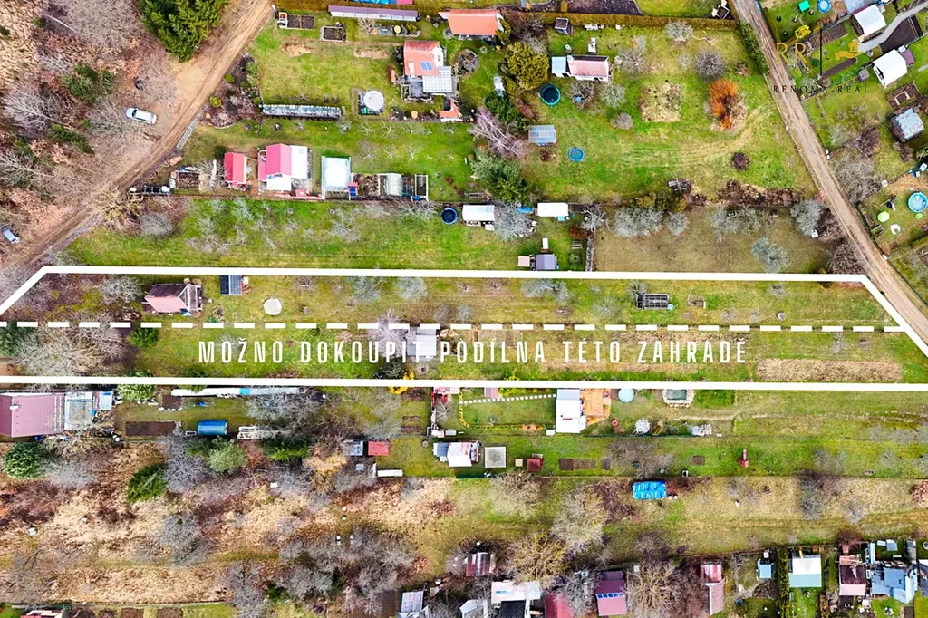 K této zahradě je možné přikoupit i vedlejší zahradu formou spoluvlastnického podílu (parc. č. 1340, podíl id. 7/16), a získat tak další plochu navíc.